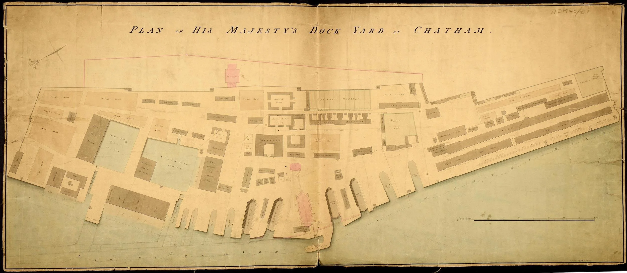 Figure 6. Chatham dockyards buildings. ADM 140/21. 1735. National Archives, Kew.